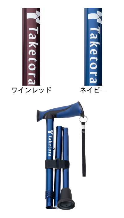 軽量で持ち運びに便利な細首タイプの折りたたみ杖。